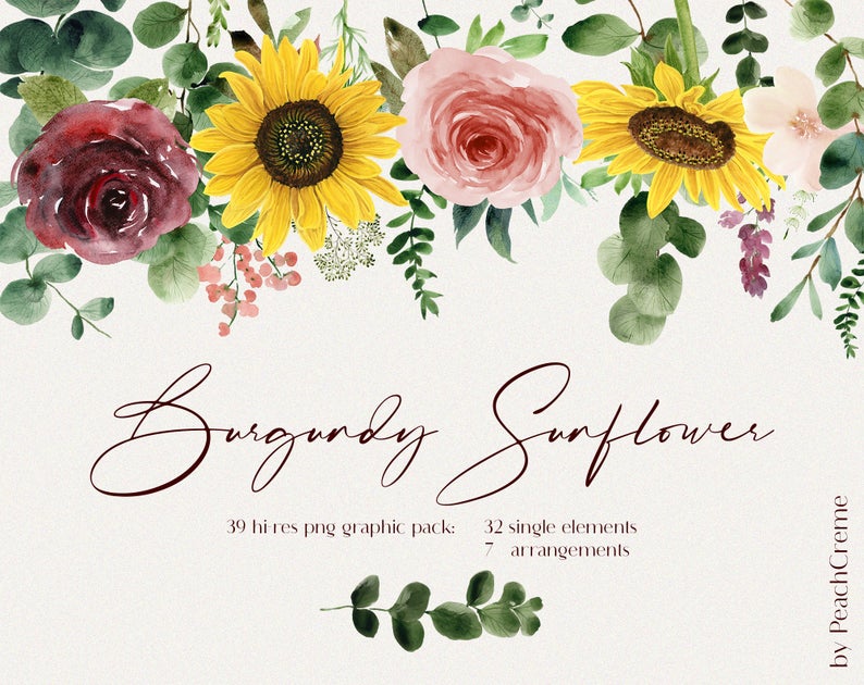 PeachCreme presents new watercolor collection "Burgundy Sunflower".