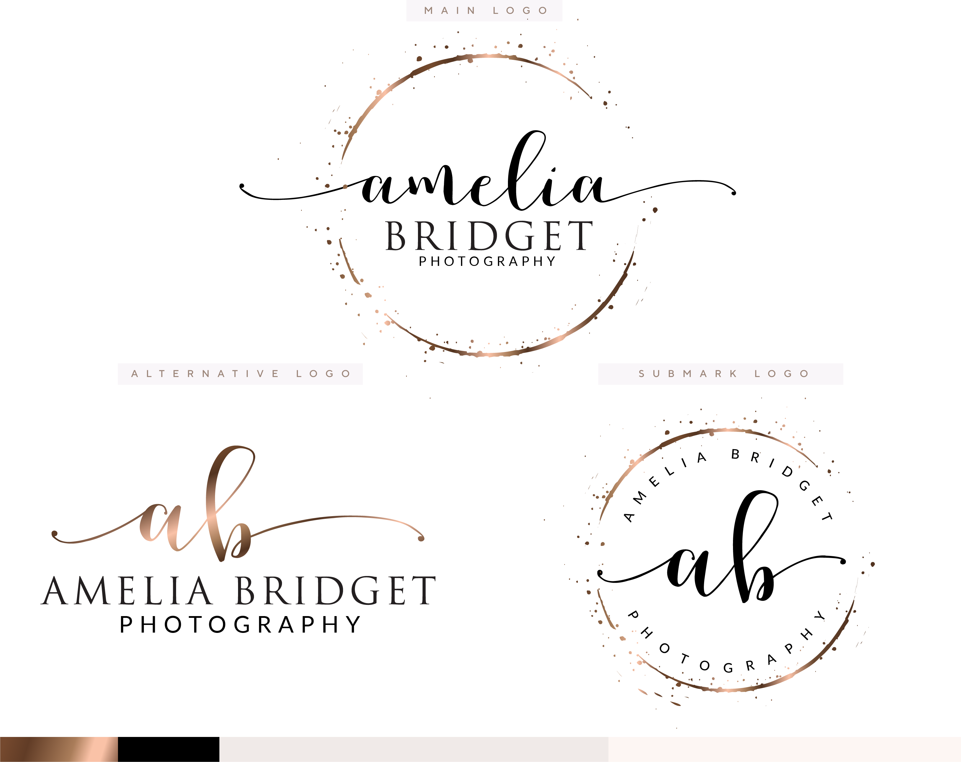Logo Design, Rose Gold Branding Kit, Photography Logo, Calligraphy Logo Design, Boutique Logo, Watermark, Beauty Blogger Logo, MUA logo set