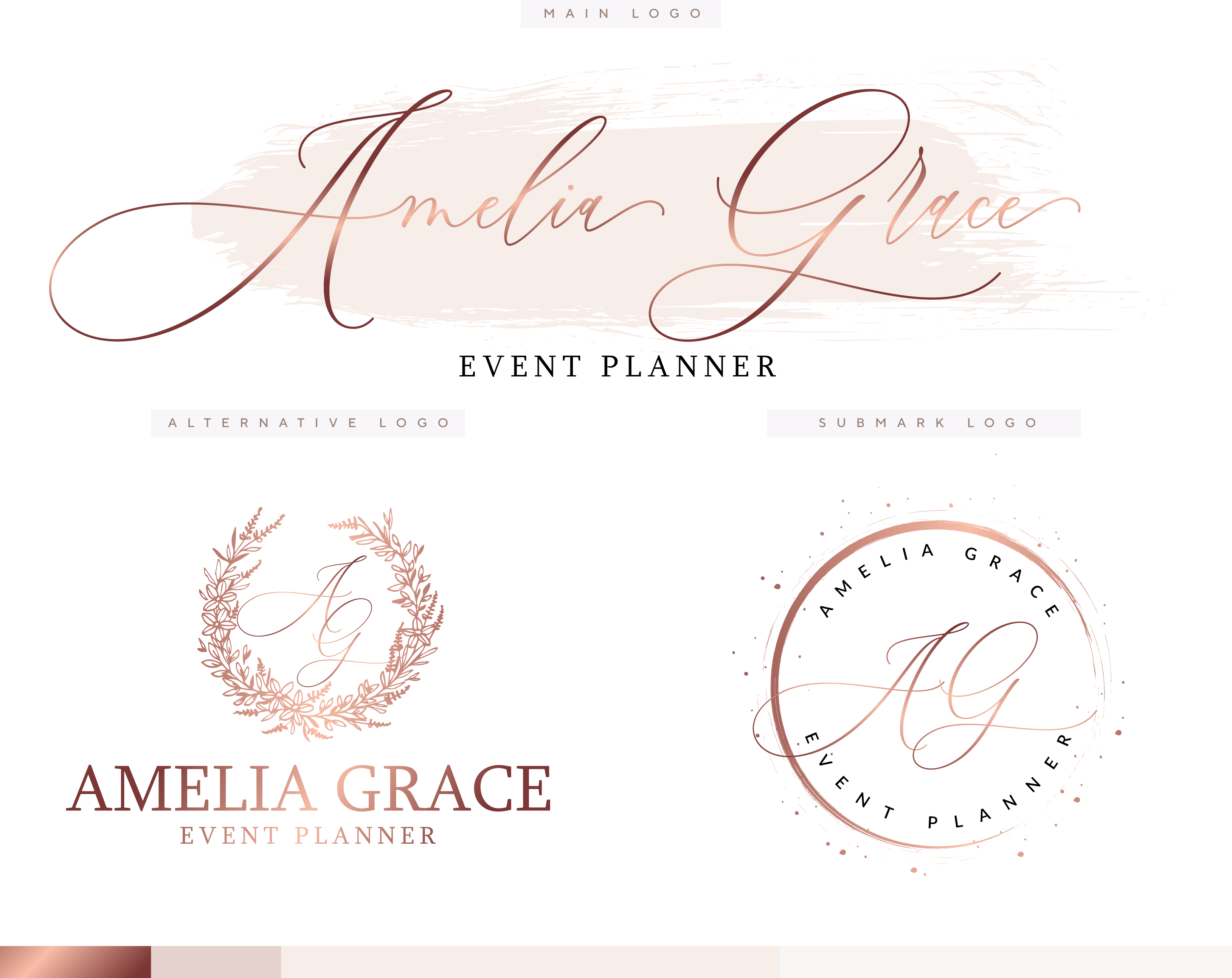 Watercolor Logo, Rose Gold Logo, Photography Logo, Premade Logo Design, Boutique Logo, Watermark stamp, Floral Logo, Calligraphy Logo, Logos