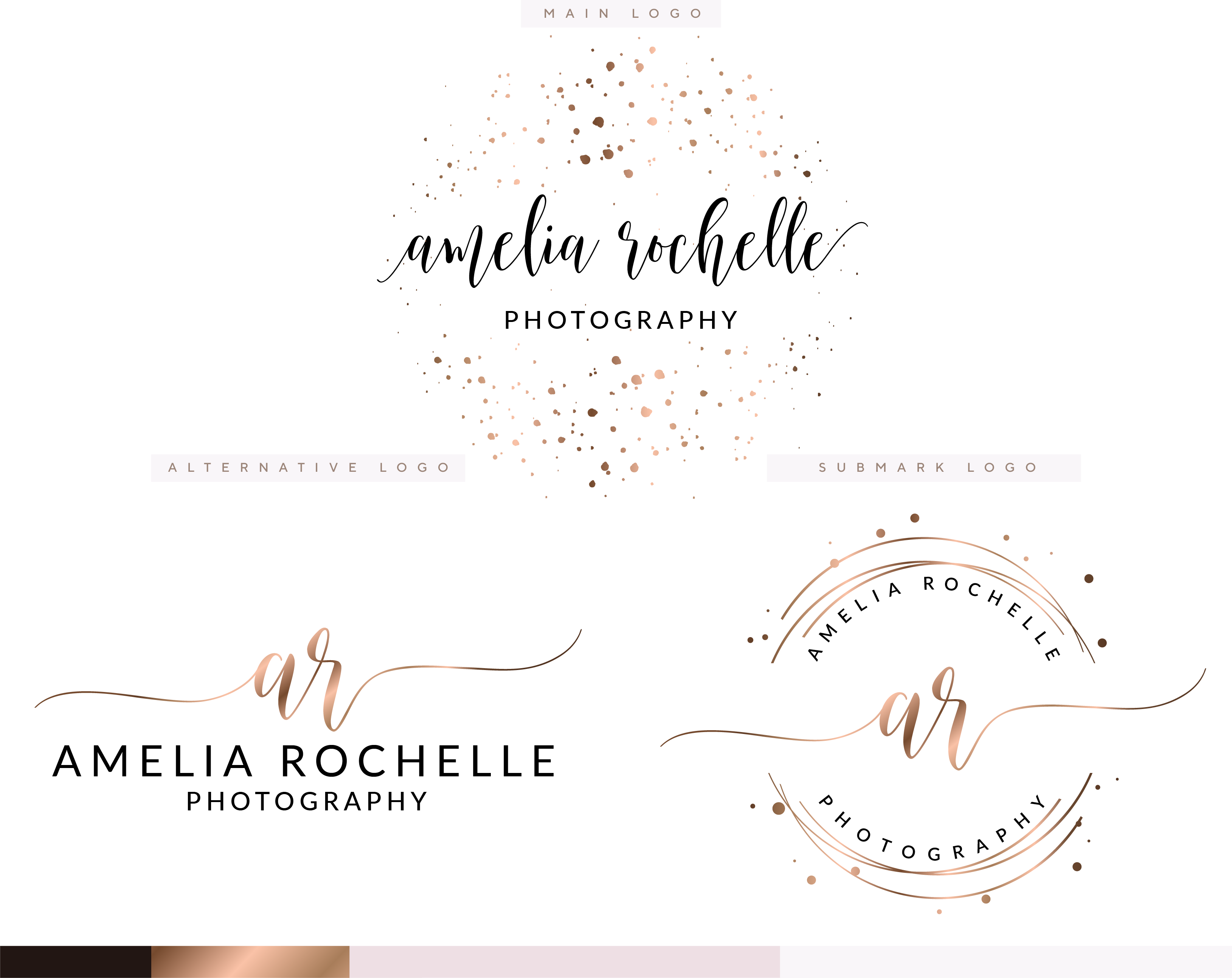 Confetti Logo Design, Rose Gold Branding Kit, Photography Logo, Premade Wedding Logo Design, Boutique Logo, Florist logo, Beauty studio logo