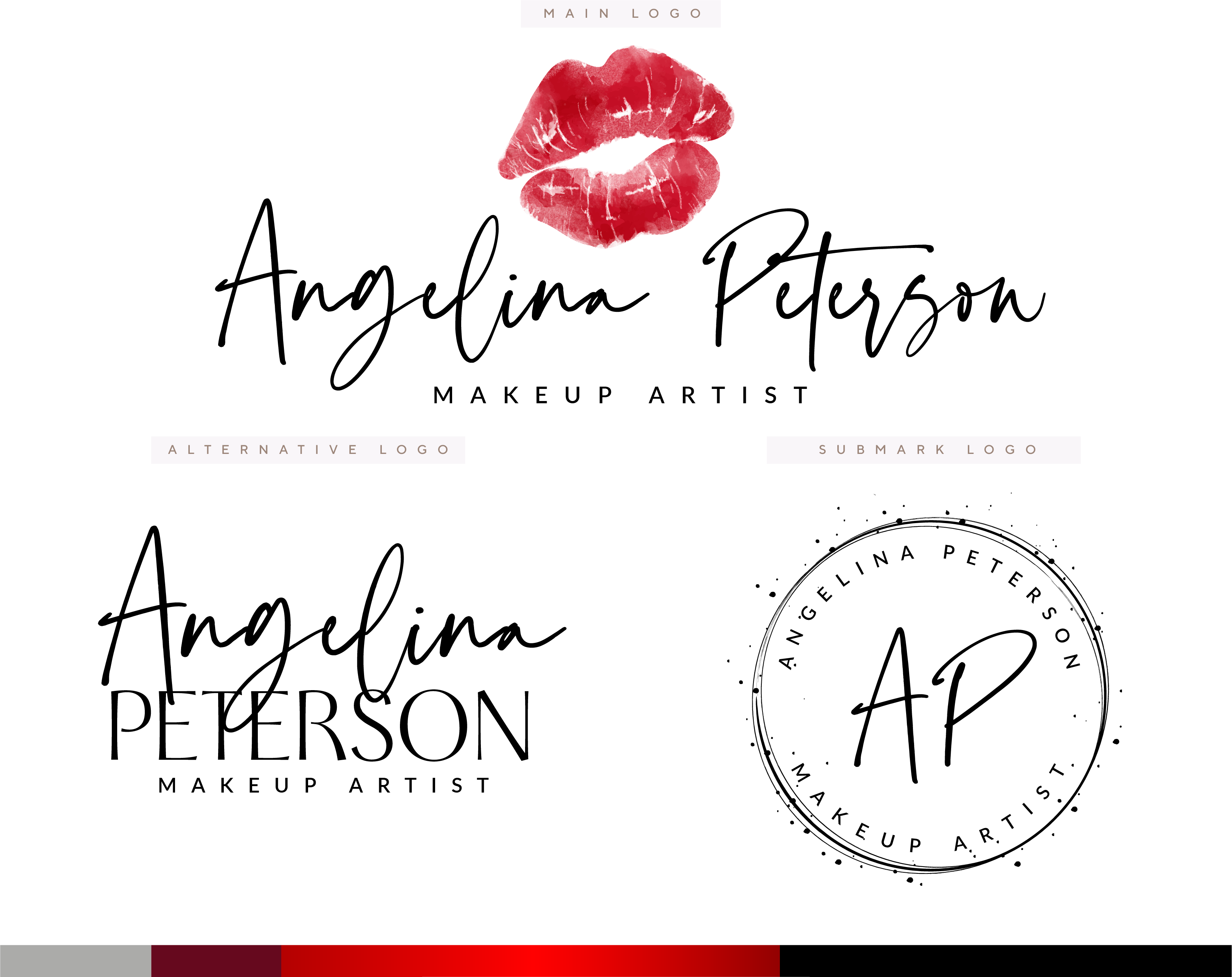 Premade Logo Design, Lips Beauty Branding Set, Stamp Watermark, Beauty Salon Boutique, Make up Artist, Marketing Kit, Makeup Logo Design