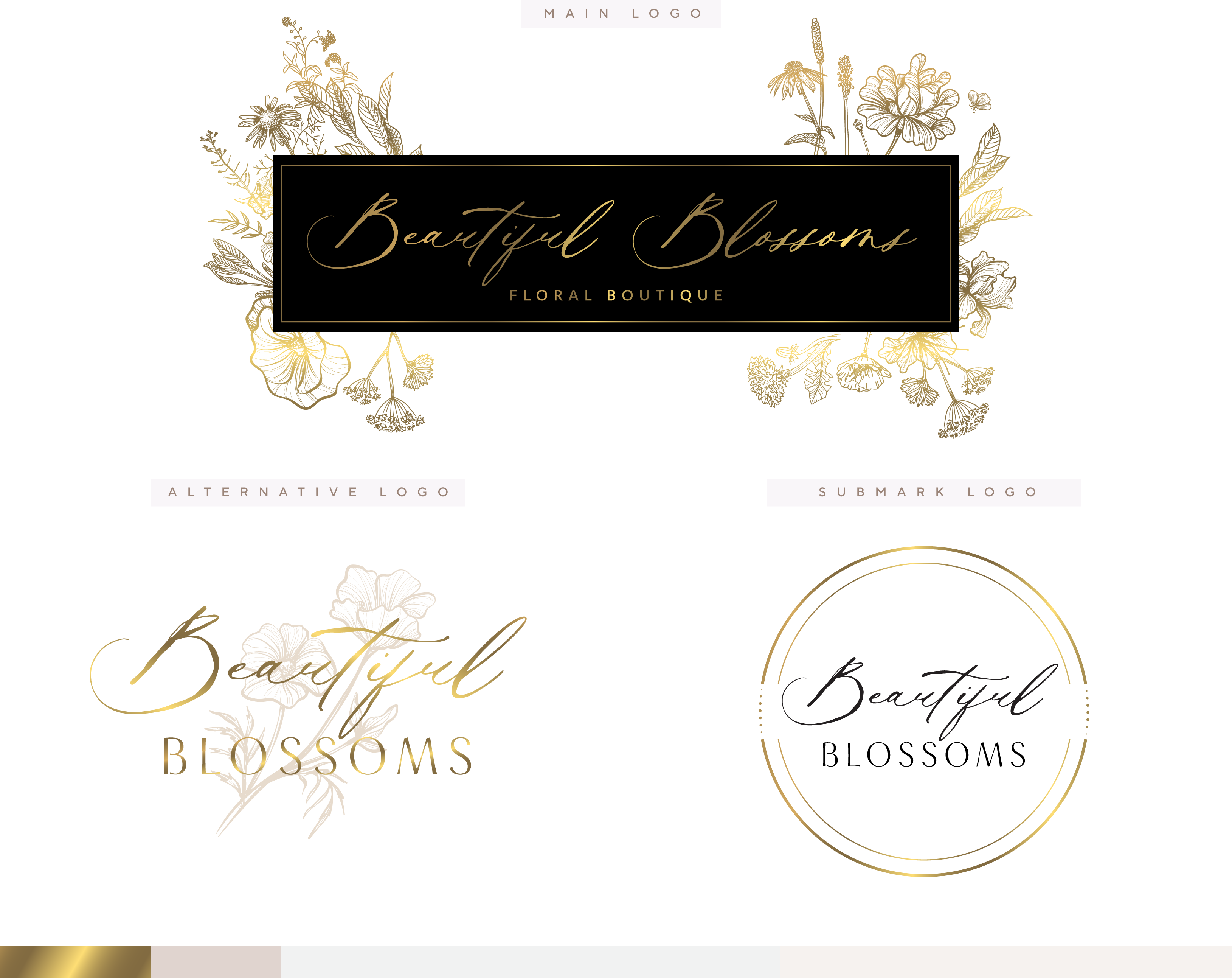 Elegant Floral Logo, Photography Logo, Fine Art Logo, Calligraphy Logo, Floral Boutique Logo, Watermark Gold Wedding Logo Calligraphy Logo