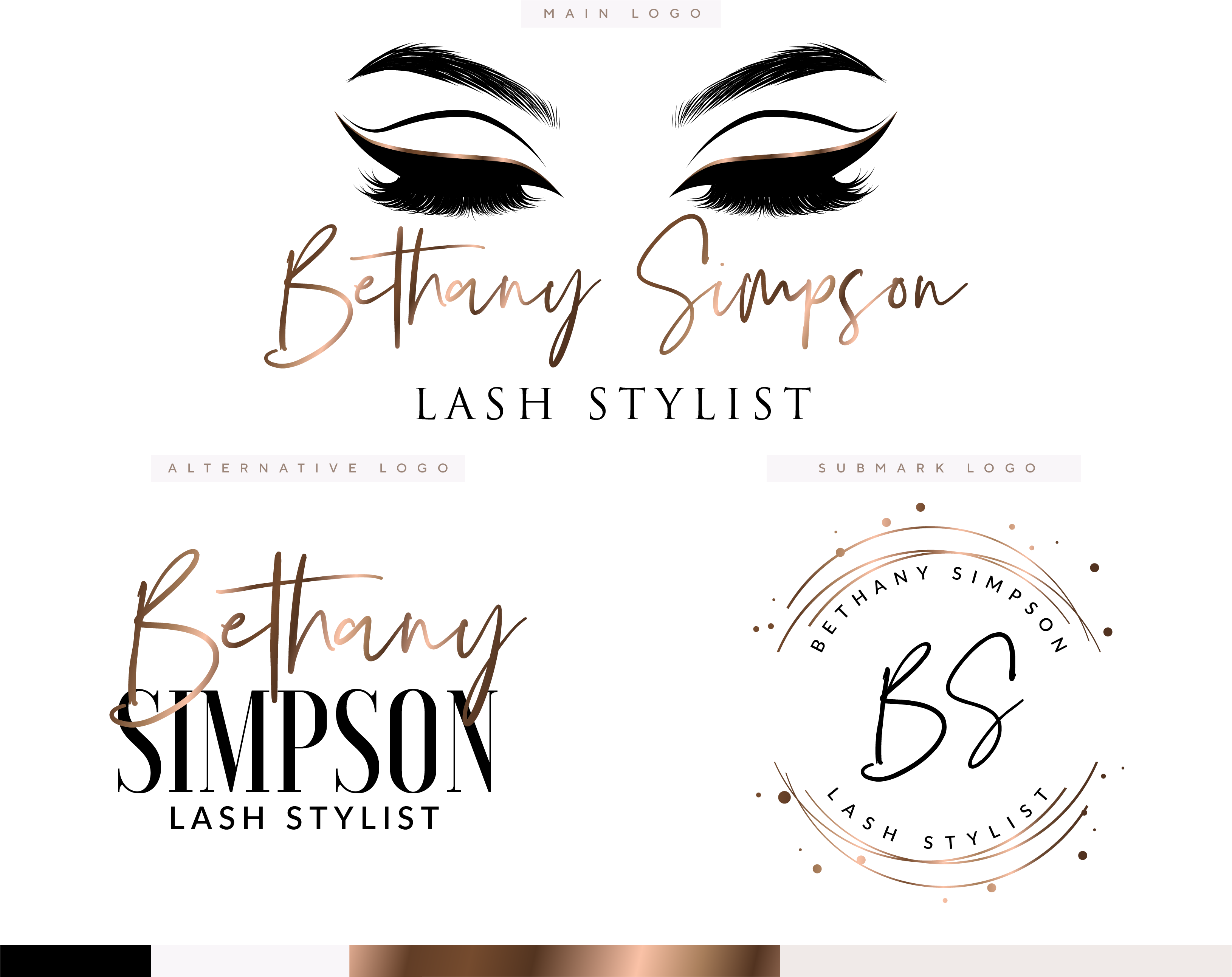 Premade Logo Design, Rose Gold EyeLash Branding Set, Stamp Watermark, Beauty Salon Boutique, Make up Artist, Marketing Kit, Makeup Logo Design