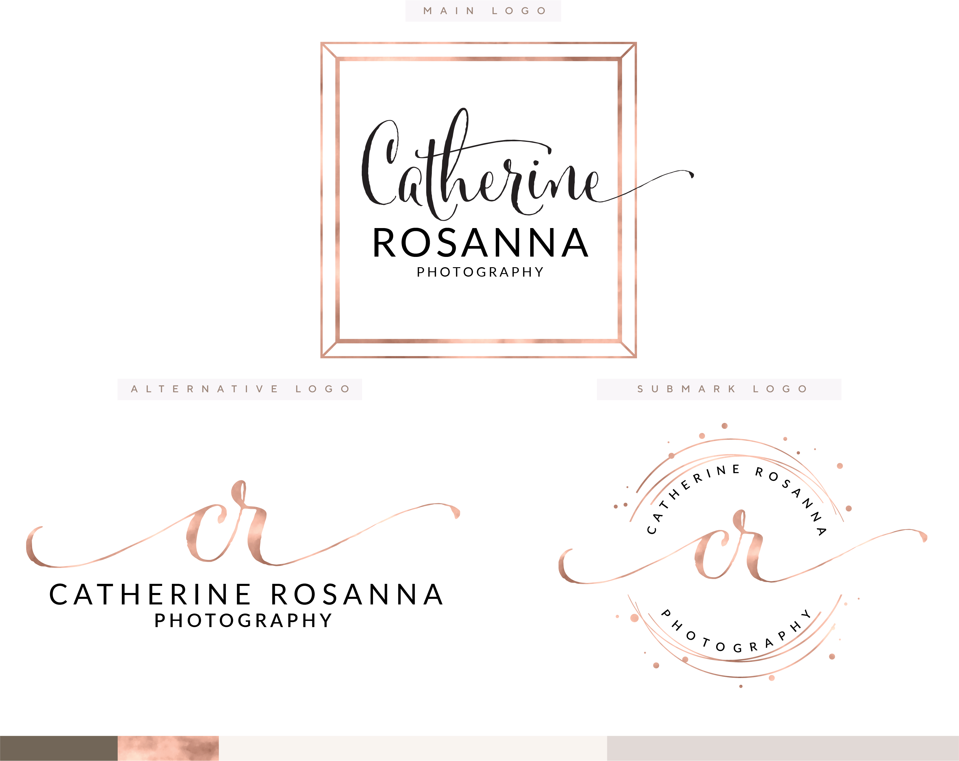 Rose Gold Branding Kit, Photography Logo, Premade Calligraphy Logo Design, Boutique Watermark Logo Rose Gold Confetti Logo Design, Marketing