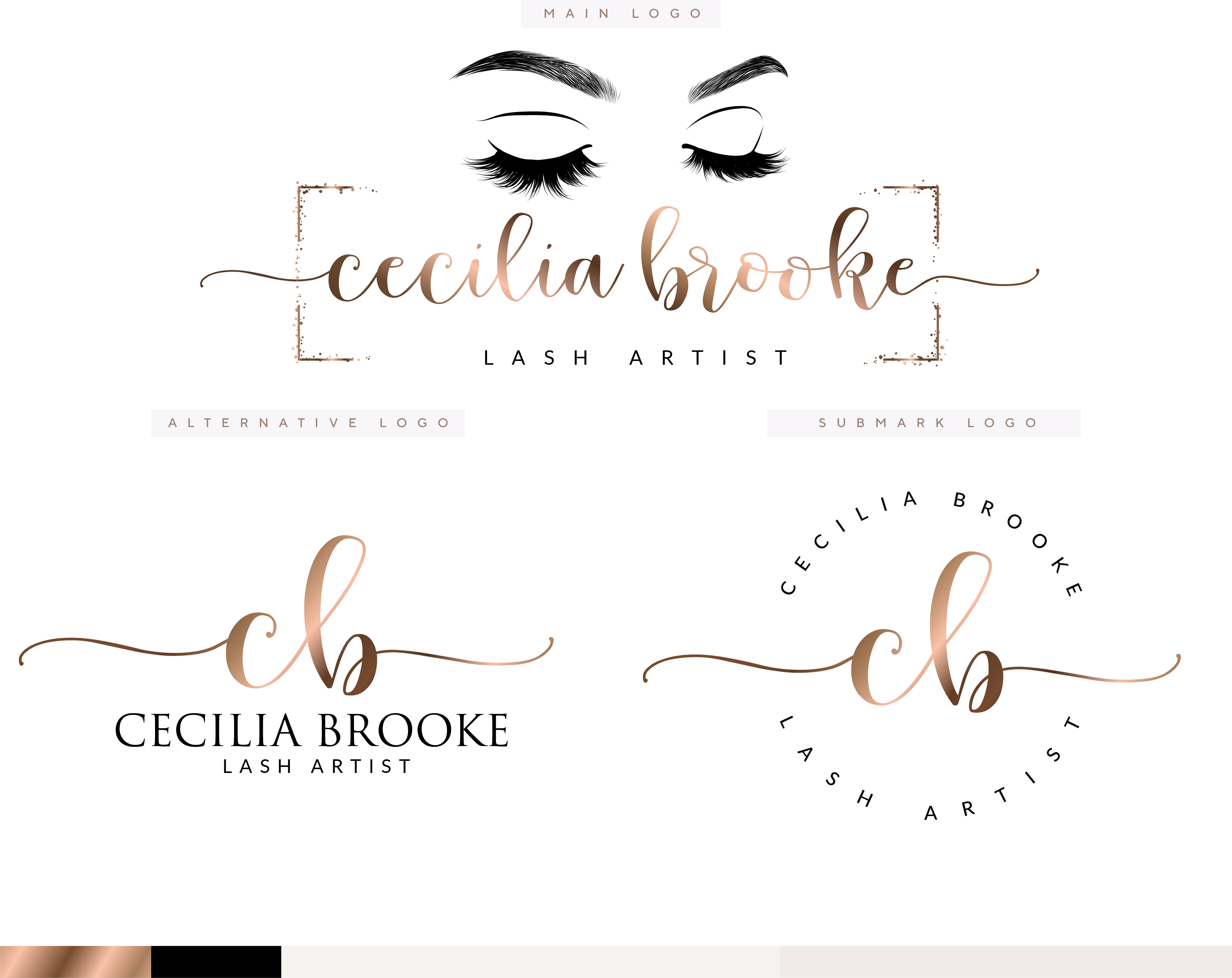 Premade Logo Design, Rose Gold EyeLash Branding Set, Stamp Watermark, Beauty Salon Boutique, Make up Artist, Marketing Kit, Makeup Logo Design