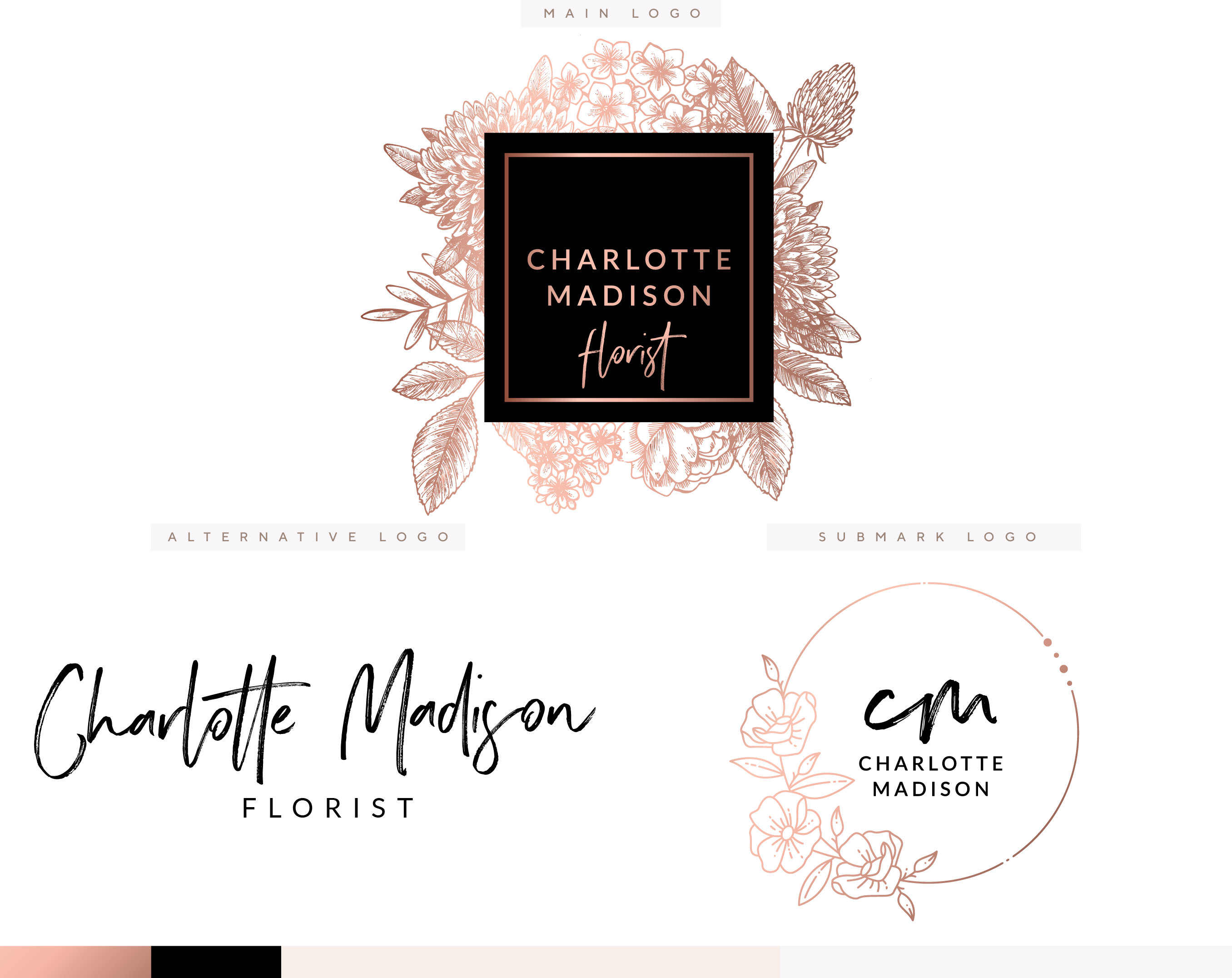 Rose Gold Florist Logo Design, Rose Gold Logo, Wedding Photography Logo, Premade Logo Design, Boutique Logo, Watermark stamp, Floral Logo, Calligraphy Logo, Logos
