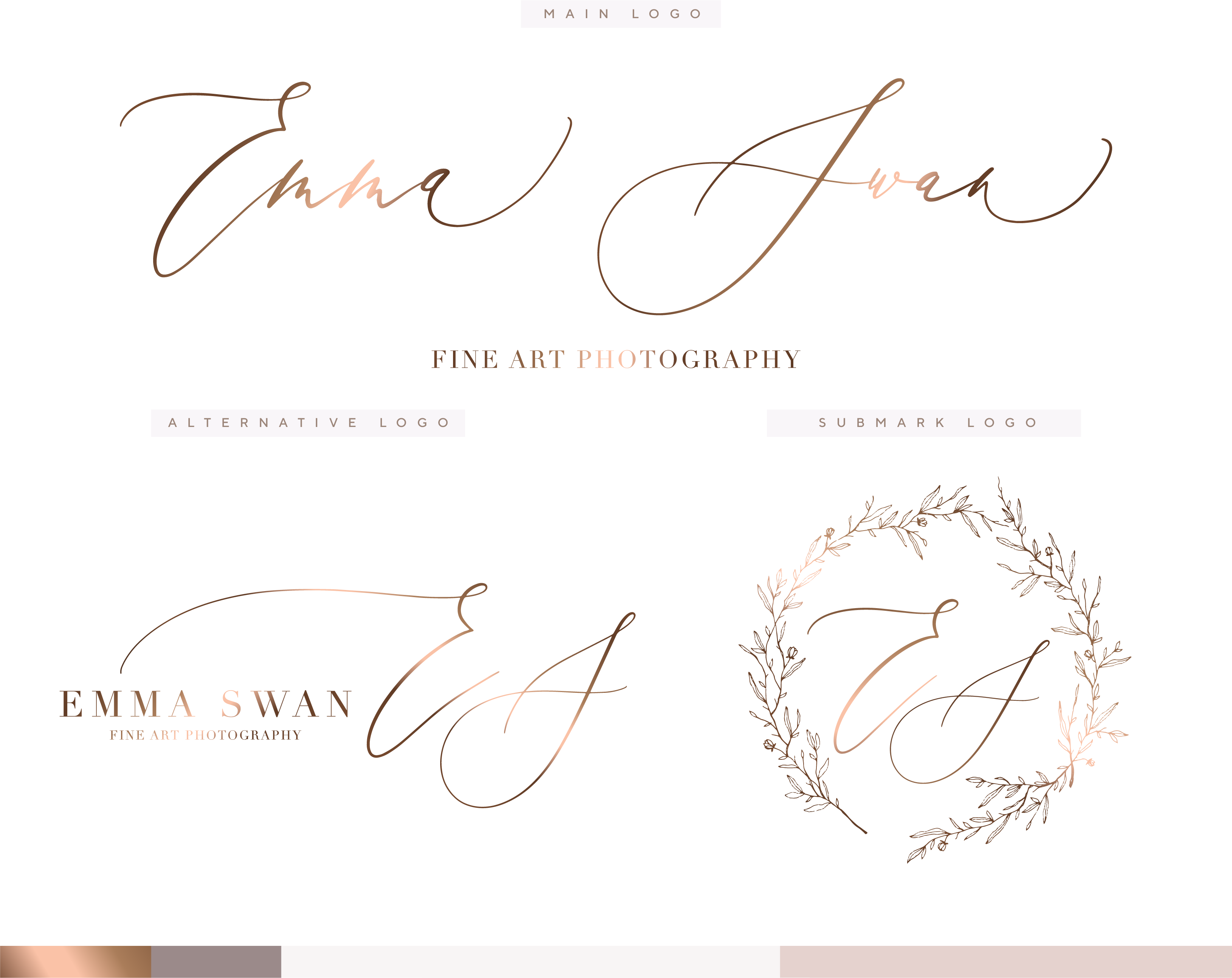 Fine Art Photography logo, Premade Logo Design, Rose Gold Photography Logo, Calligraphy Logo Design, Boutique Logo Watermark stamp, Branding