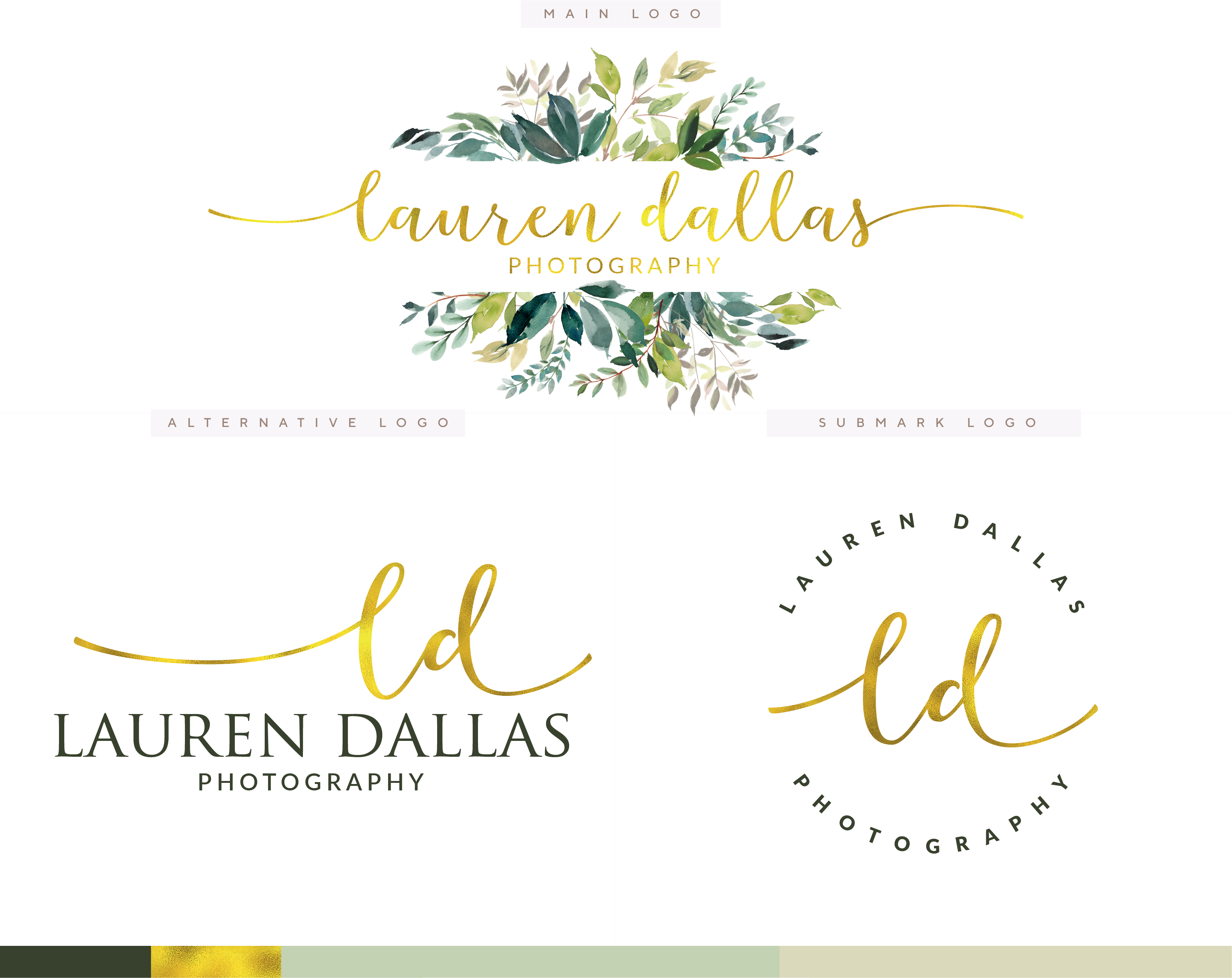 Botanical florist Logo, Gold Greenery Logo, Greenery Wedding Logo, Gold Botanical Logo, Florist Watermark Logo, Watercolor Leaves, Flowers