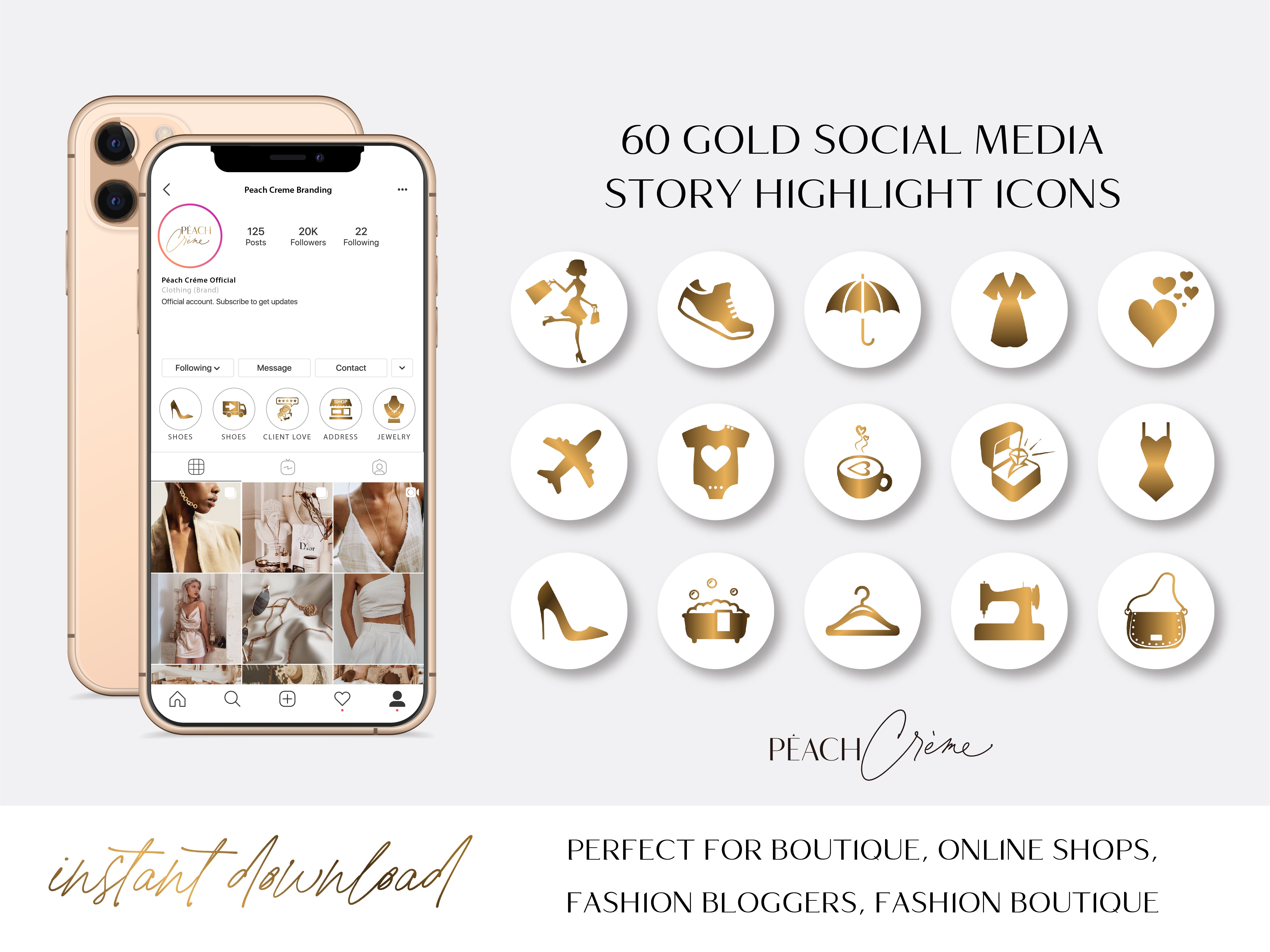 You will get 60 Gold Boutique/Shopping IG story highlight covers to use right now to make your stories perfect!