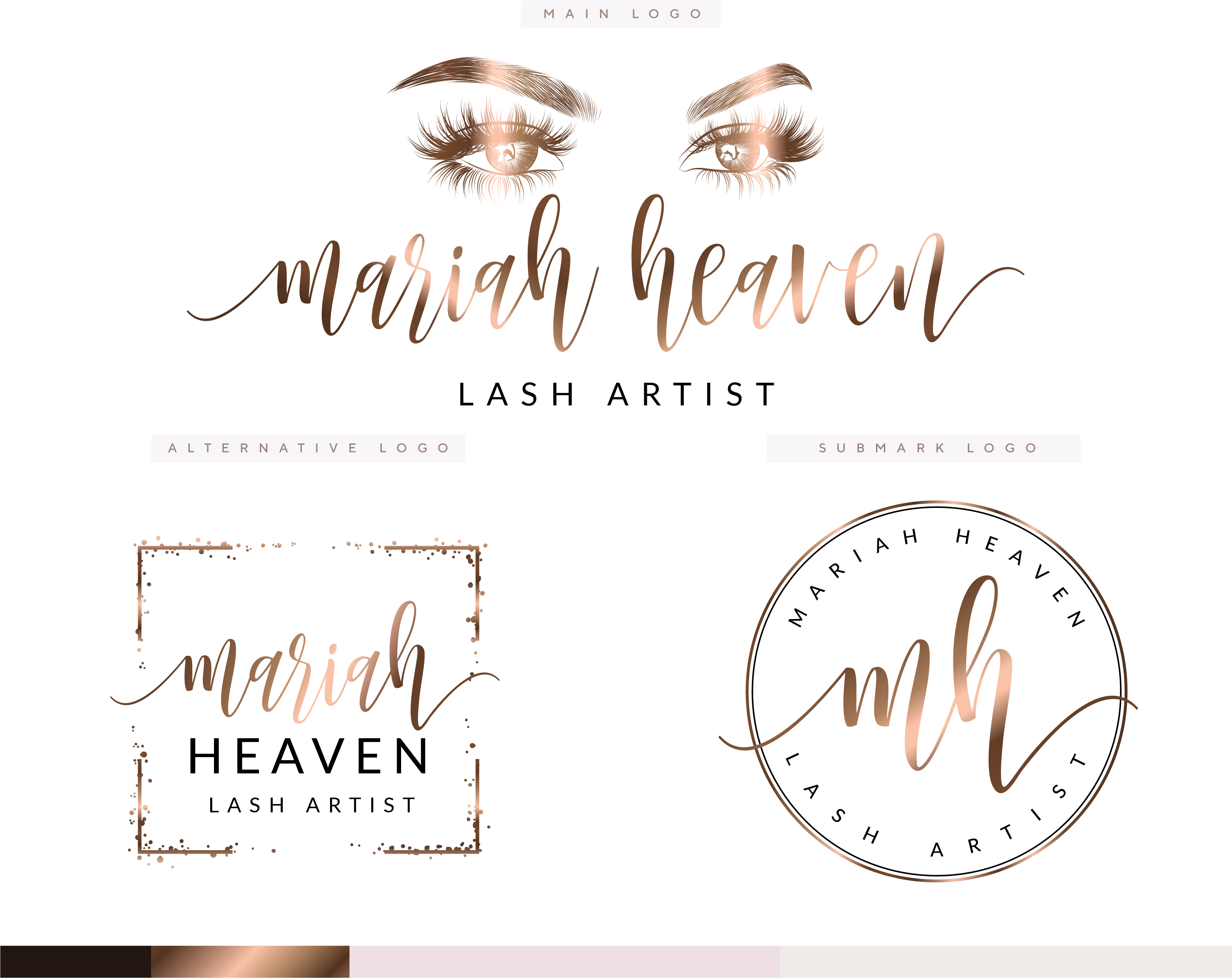 Premade Logo Design, Rose Gold EyeLash Branding Set, Stamp Watermark, Beauty Salon Boutique, Make up Artist, Marketing Kit, Makeup Logo Design
