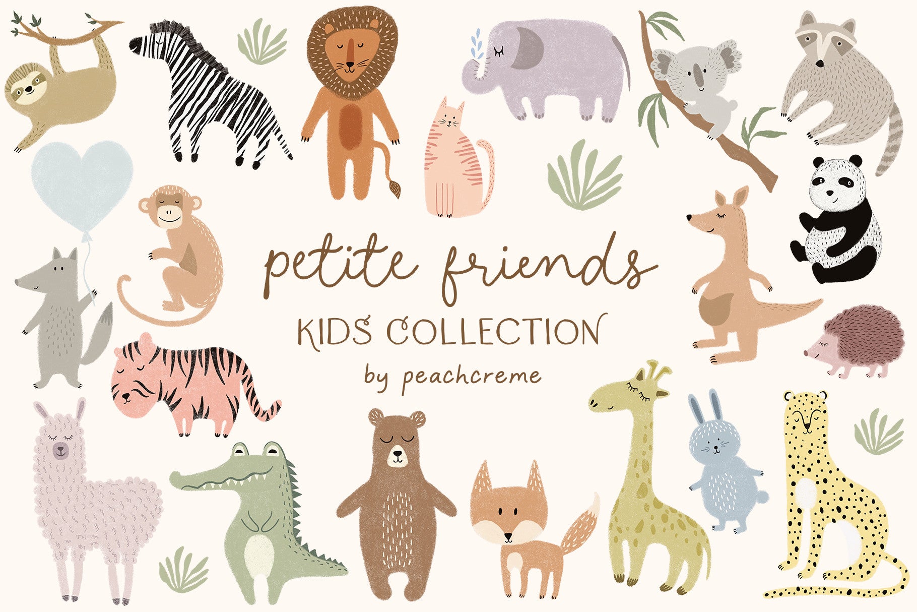 PeachCreme presents new kids animal collection "Petite Friends" with hand drawn effect. This collection is perfect for posters, patterns, nursery room decor, baby shower invitations and much more! Also, you can play with single elements and create your version of compositions, create your own posters, patterns and much more for kids.