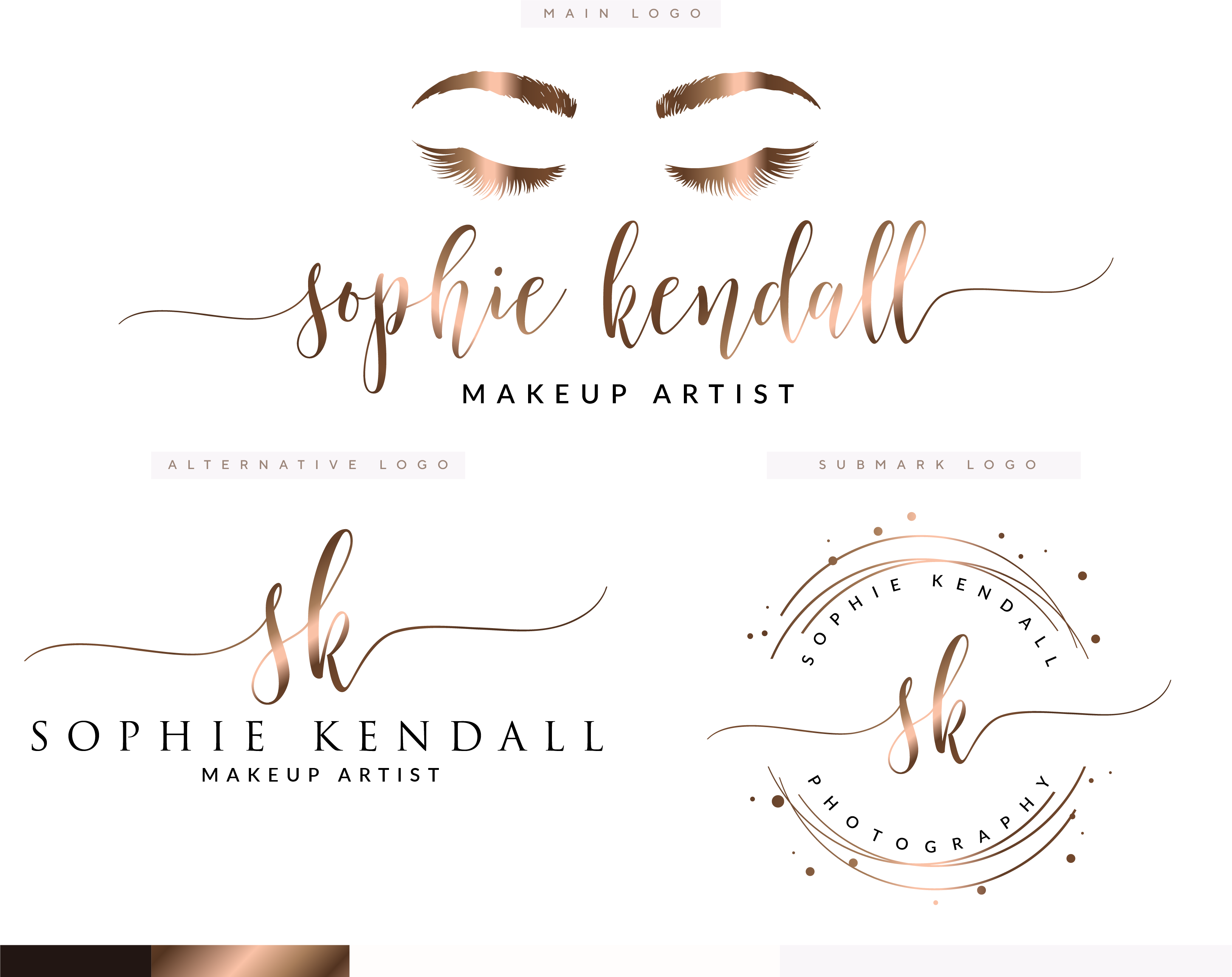 Lash Logo, Rose Gold EyeLash Branding Set, Stamp Watermark, Beauty Salon Boutique, Make up Artist, Marketing Kit, Makeup Logo Design