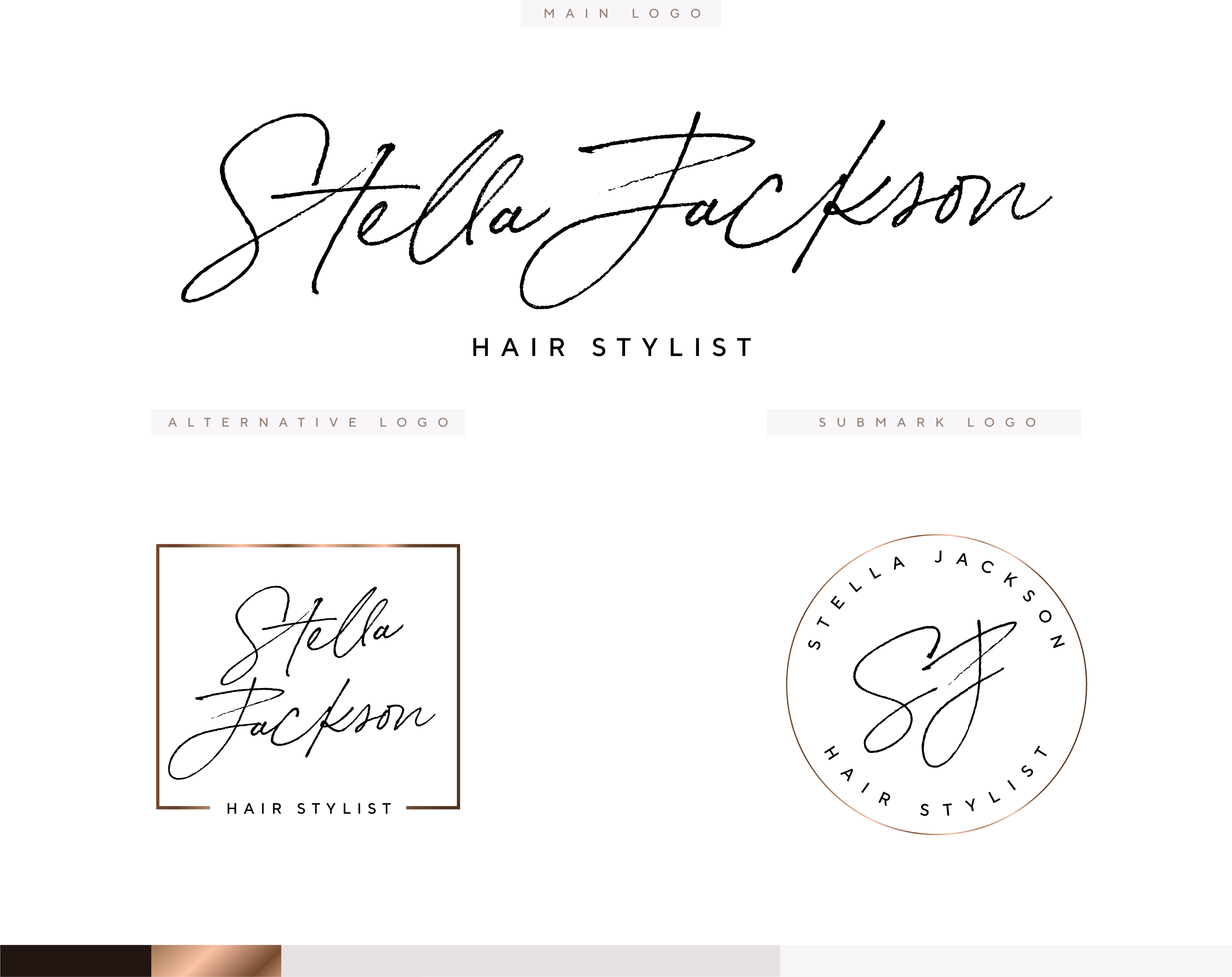 Hair Stylist Logo Design, MUA Logo, Rose Gold Logo, Makeup Artis Logo, Watermark Logo, Calligraphy Logo, Mini branding kit, Premade Logo Set