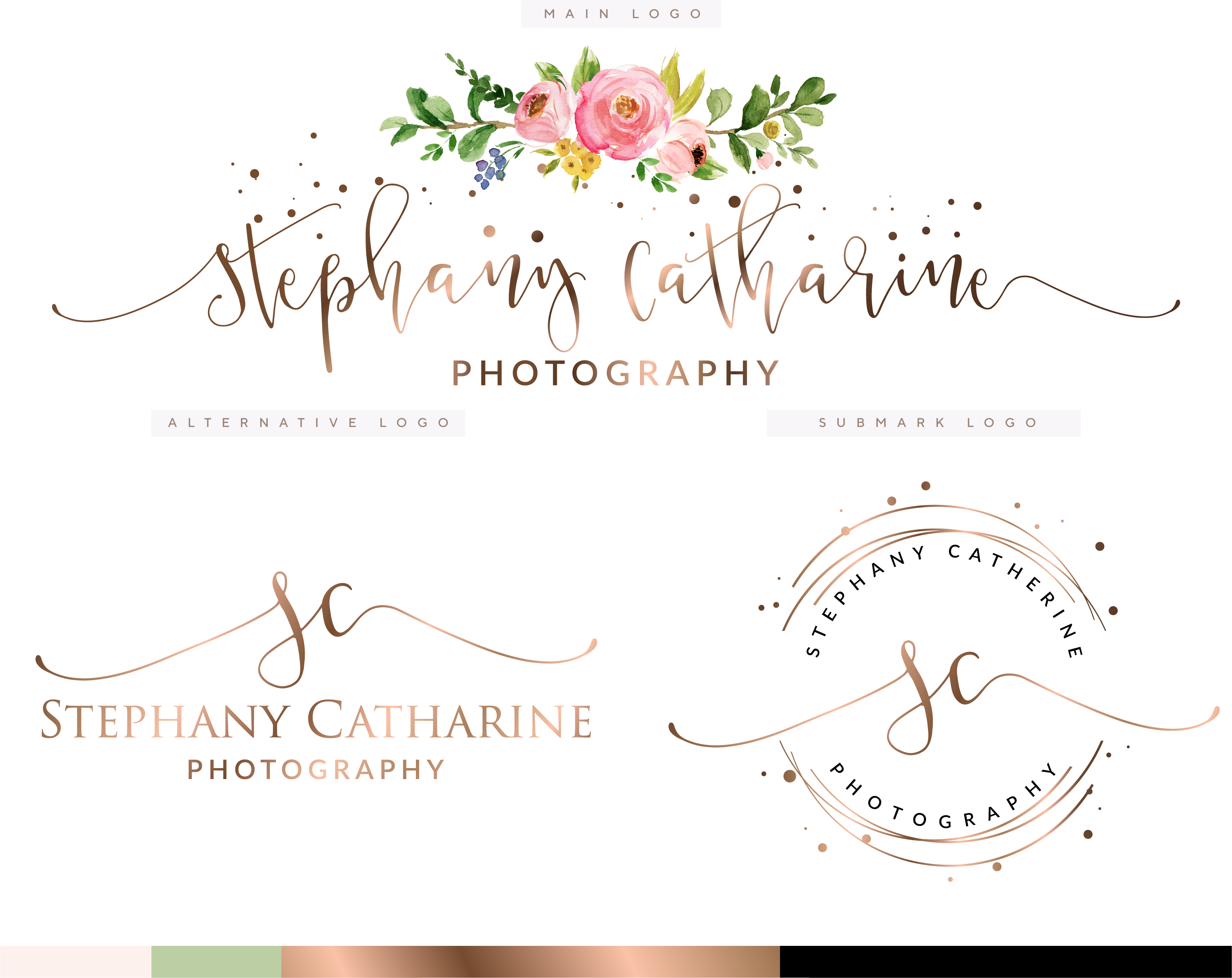 Florist Logo, Rose Gold Greenery Logo, Greenery Wedding Logo, Botanical Logo, Botanical florist Logo, Florist Watermark Logo Flower Logo Kit