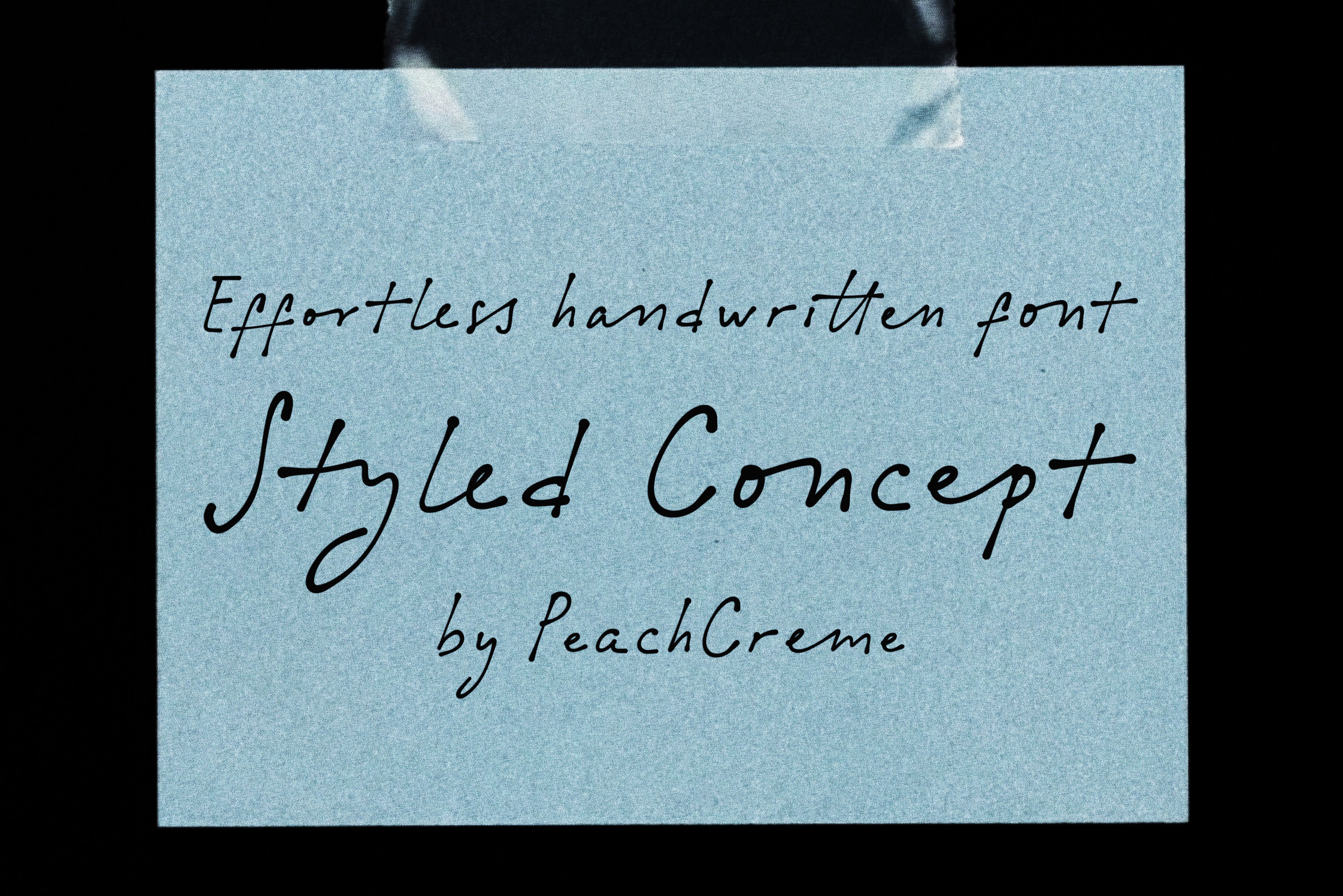 Styled Concept is an effortless handwritten font designed to look like quick notes or natural jotting. It features a lean, slightly irregular slant and varying stroke weights that mimic the movement of a pen on paper. It isn't a perfect, formal calligraphy script; rather, it’s a versatile tool for when you need a "human" touch that feels authentic and understated.