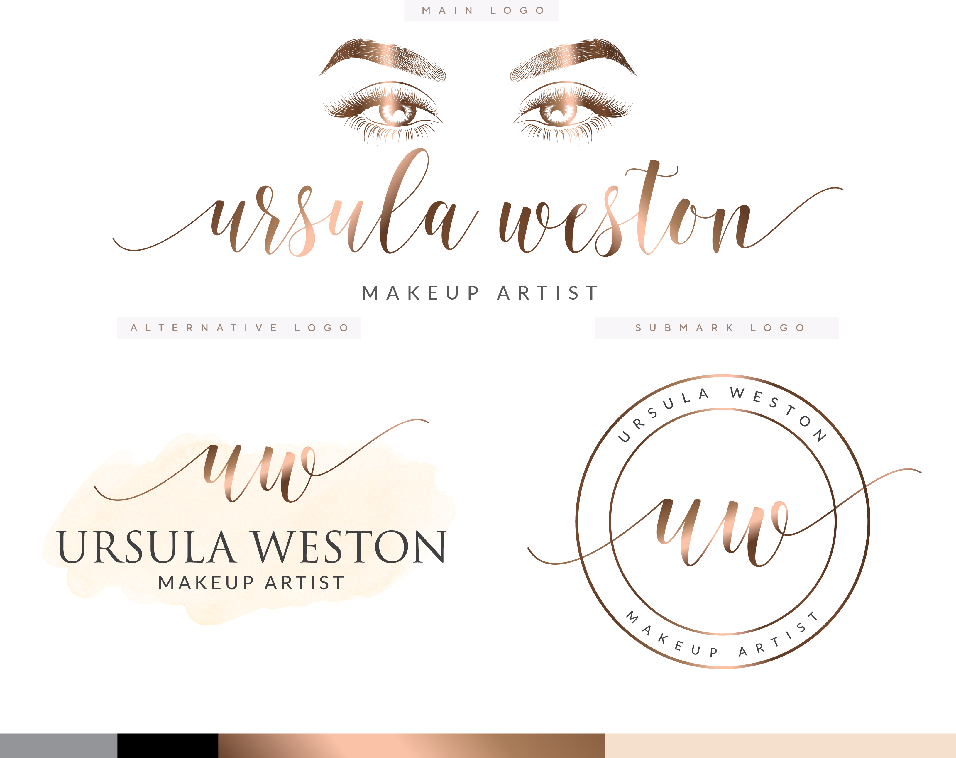 Premade Logo Design, Rose Gold EyeLash Branding Set, Stamp Watermark, Beauty Salon Boutique, Make up Artist, Marketing Kit, Makeup Logo Design